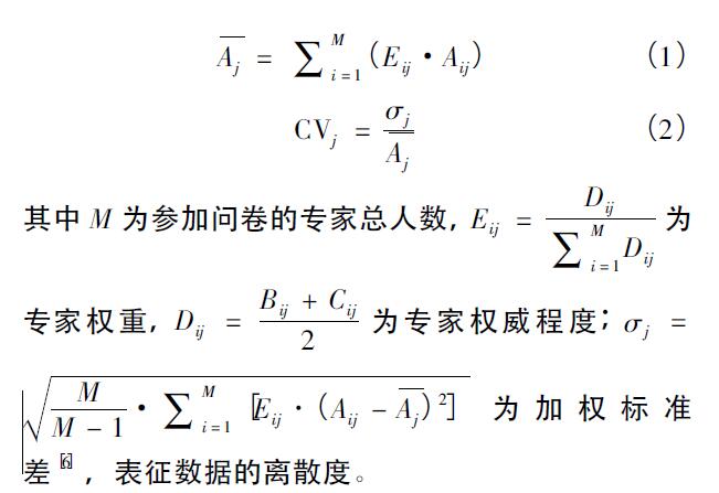 本次德爾菲法共進(jìn)行了三輪問卷。第三輪問卷后,所有指標(biāo)均達(dá)到一致性收斂要求CVj<0.15。較后一輪問卷數(shù)據(jù)如表2所示。