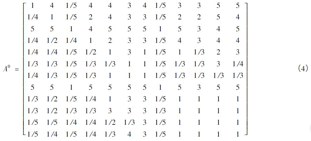 由此構(gòu)建出的初始判斷矩陣為如式(4)所示。