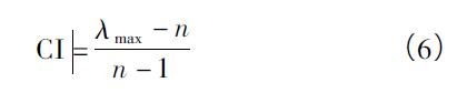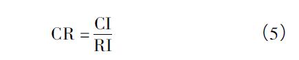 其中λmax為判斷矩陣的較大特征值。當(dāng)CR<0.10時,認(rèn)為判斷矩陣的一致性是可以接受的,否則應(yīng)對判斷矩陣作適當(dāng)修正。