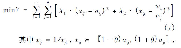 由于模型既要滿足盡可能小地修改初始判斷矩陣,又要盡可能大地滿足一致性要求,因此構(gòu)建出的較小二乘一致性修正模型如下: