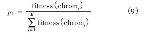 3)選擇。本文采用轉(zhuǎn)盤式選擇算子[8]對個體進(jìn)行選擇,每次進(jìn)化過程中個體被選擇的概率與適應(yīng)度值成正比,即