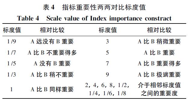其中aij為重要性標(biāo)度值,aij=1/aji,n為指標(biāo)個數(shù),i,j=1,2,…,n。