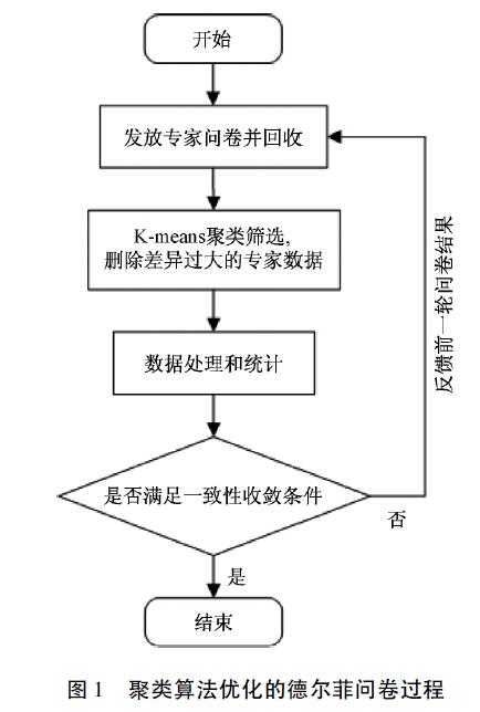 德爾菲法是一種采用背對背通信方式征詢專家小組成員預(yù)測意見,并通過多輪征詢使意見趨于一致的定性評價(jià)法。聚類算法是以相似性為基礎(chǔ),將相似性強(qiáng)的樣本聚成一類的研究分類問題的統(tǒng)計(jì)分析方法。