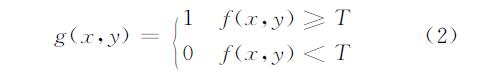 設(shè)輸入圖像為f(x,y),輸出圖像為g(x,y),用得到的分割閾值T對圖2(a)進(jìn)行處理,得到圖2