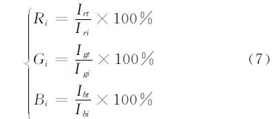 式中Ri、Gi、Bi分別為第i個燈點的紅色、綠色、藍(lán)色的校正系數(shù);Irt、Igt、Ibt為三色校正目標(biāo)值的相對亮度值;Iri、Igi、Ibi為第i個燈點三色相對亮度值。因此每個燈點所對應(yīng)的校正矩陣為[RiGiBi]T。