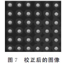 式中(xi,yi)為燈點區(qū)域的重心坐標(biāo),也就是相對應(yīng)LED燈點的中心位置坐標(biāo);燈點區(qū)域的大小為M×N,M、N分別為燈點區(qū)域?qū)挾群透叨确较蛏系南袼貍€數(shù);(xmn,ymn)為燈點區(qū)域內(nèi)圖像像素(m,n)的坐標(biāo),m、n分別為該圖像像素在該燈點區(qū)域內(nèi)所處的行和列;pmn為燈點區(qū)域內(nèi)該圖像像素(m,n)的二值化后的值。如圖2(c)所示,該方法能夠確定各個LED燈點的位置,并且由于使用了閾值分割的方法,能有效地避免燈點之間的相互干擾,使計算出的燈點的位置更加精確。