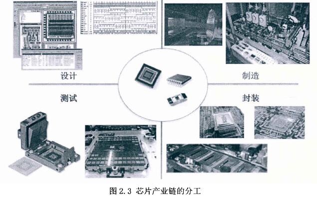 LED顯示屏芯片制造業(yè)屬于高風險高投入高收益的“三高”行業(yè)。入行門檻較高,但隨,著國家對集成電路行業(yè)的大力投入和支持,許多芯片設(shè)計公司紛紛成立,其根本的生命力在于它可以大批量、低成本和高可靠地生產(chǎn)。比如,集成電路芯片的價格約為10-100美元,而生產(chǎn)線的投資卻高達10-15億美元(200mm,0.1 8um),隨著工藝不斷向著深亞微米級發(fā)展,目前已有28nm的生產(chǎn)工藝,投資會越來越高。為了滿足市場的發(fā)展需要及降低芯片的生產(chǎn)成本,如圖2.3所示,市場上出現(xiàn)了芯片制造產(chǎn)業(yè)鏈的分工,主要包括設(shè)計、制造、封裝和測試四大部分。